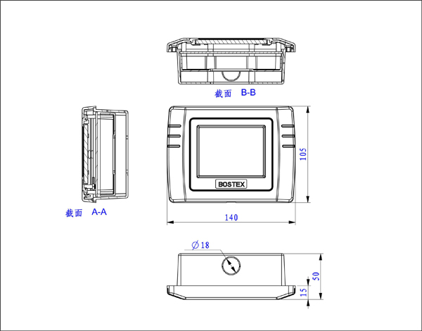 140x105x30mm,140x105x15mm(嵌入式) |