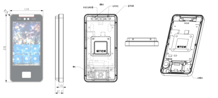- 7⼨⾼清触摸显⽰屏,具备⼈脸实时检测、跟踪、⽐对功能,可显⽰⼈脸交互信息